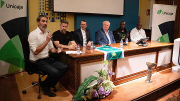 Jornada de muchos recuerdos con motivo de los 25 años de la Copa Korac. En un salón de actos Unicaja abarrotado, varios de los protagonistas de aquella gesta para el Club debatieron en una mesa redonda sobre todo lo que supuso el título conquistado en 2001 en Serbia ante el Hemofarm Vrsac, el primero de la historia del Club y, también, el primero de un equipo andaluz en Europa. En el acto, moderado por el capitán de aquel equipo, Berni Rodríguez, contó con la presencia de varios jugadores de esa plantilla como Carlos Cabezas, Jean-Marc Jaumin, Mous Sonko y Kenny Miller, además de su mítico entrenador, Boza Maljkovic. También estuvieron presentes desde la distancia Paco Vázquez y Veljko Mrsic, quienes enviaron varios vídeos para recordar aquella temporada.